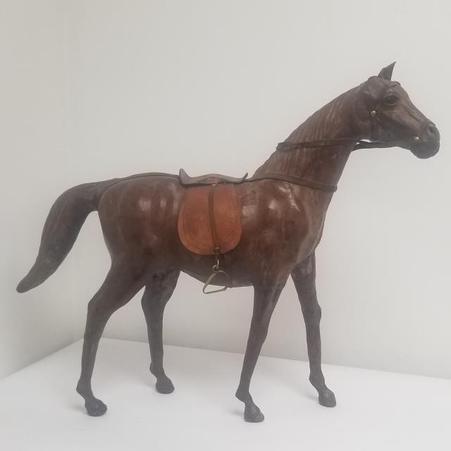 Title HORSE FIGURE-Carved of Wood & Wrapped in Leather Color Brown -